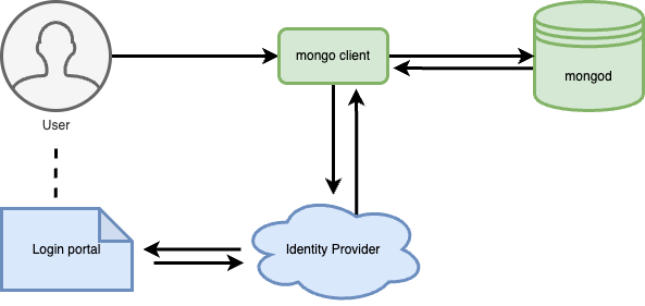 - The MongoDB client requests authentication from the IdP.